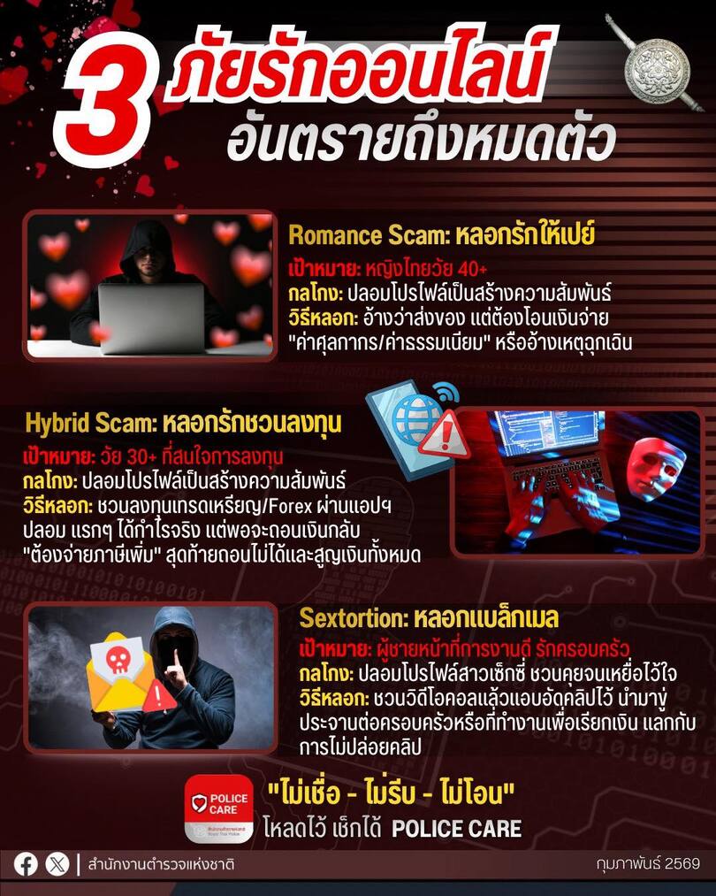 อย่าคิดว่าเป็นเสือ .. อาจกำลังเป็นเหยื่อก็ได้นะ เตือนภัยอาชญากรรมออนไลน์3 ภัยร้าย ใช้ความรักเป็นกลลว