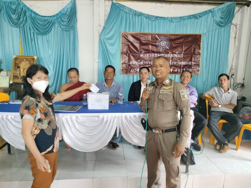 การมีส่วนร่วมของประชาชนในการป้องกันอาชญากรรม 6 กรกฎาคม 2567 โดย admin / ข่าวกิจกรรม 01 วันที่ 6 กรกฎาคม 2567 เวลา 07.00 น. โดยการอำนวยการของ พ.ต.อ.ประสิทธิ์ หล้าสมศรี ผกก.สภ.ปง มอบหมายให้ชุด ชมส.สภ.ปง ออกพบปะเยี่ยมเยียน/ร่วมประชุม/ให้ความรู้เกี่ยวกับโทษพิษภัยการป้องกันแก้ไขปัญหายาเสพติด การจราจร,ปัญหา อาชญากรรมต่าง ๆ รวมถึงได้ประชาสัมพันธ์งานในหน้าที่ของตำรวจแก่ประชาชน ณ หอประชุมประจำหมู่บ้านสบขาม ม.8 ต.ขุนควร อ.ปงฯ ตามโครงการ ชมส.และการมีส่วนร่วมของประชาชนในการป้องกันอาชญากรรม ประจำปีงบประมาณ พ.ศ. 2567 FacebookFacebookXXLINELine