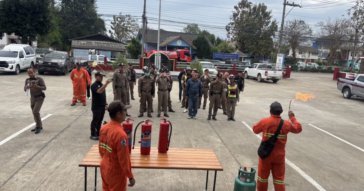 ซ้อมแผนป้องกันอัคคีภัย 25 กุมภาพันธ์ 2569 โดย admin / ข่าวกิจกรรม 01 วันที่ 25 ก.พ. 2569 เวลา 10.00 น. โดยการอำนวยการของ พ.ต.อ.พากษกรณ์ เจนใจ ผกก.สภ.ปง มอบหมายให้ พ.ต.ท.ปิยะวัฒน์ ชีวชยาภรณ์ รอง ผกก.ป.ฯ , พ.ต.ท.ฐิติพงศ์ ตาคำ สว.อก.ฯ พร้อมข้าราชการตำรวจในสังกัด สภ.ปง ร่วมซ้อมแผนป้องกันอัคคีภัยฯ ณ ลานหน้าที่ทำการ สภ.ปง โดยมีวิทยากรจากเทศบาลตำบลปง มาเป็นผู้ให้ความรู้ในการซ้อมแผนป้องกันอัคคีภัยฯ FacebookFacebookXXLINELine