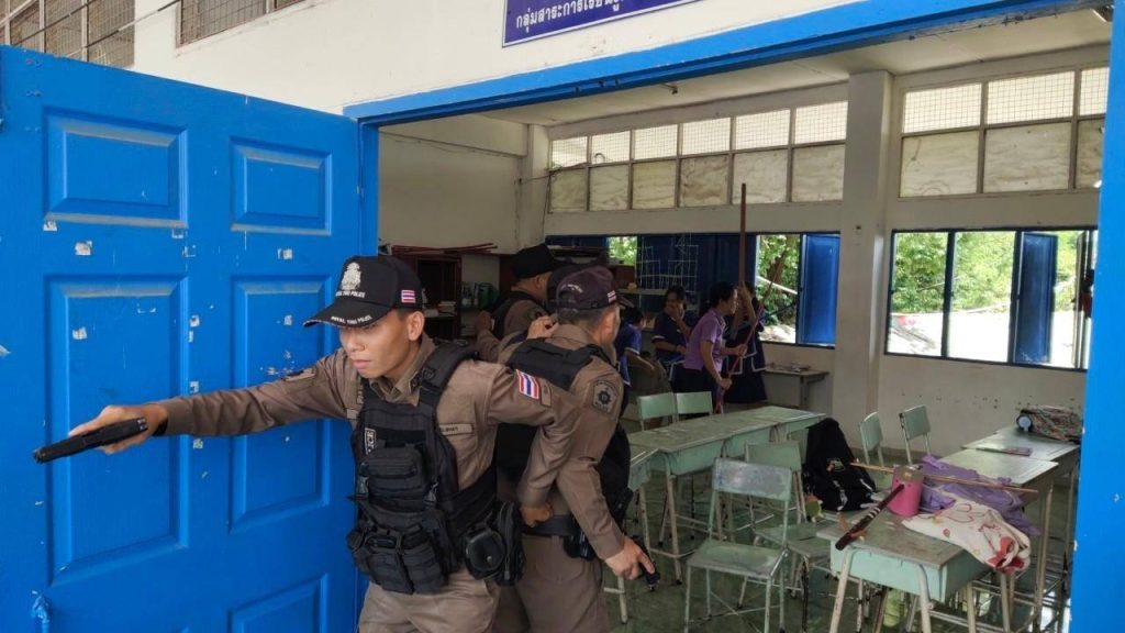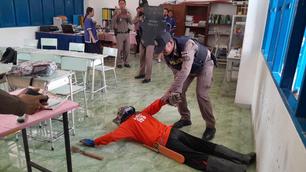 ซ้อมแผนเผชิญเหตุแบบบูรณาการ “หนี ซ่อน สู้” 12 กรกฎาคม 2567 โดย admin / ข่าวกิจกรรม 01 วันที่ 12 กรกฎาคม 2567 เวลา 13:00 -16.00 น. โดยการอำนวยการของ พ.ต.อ.ประสิทธิ์ หล้าสมศรี ผกก.สภ.ปง, พ.ต.ท.ปิยะวะฒน์ ชีวชยาภรณ์ รองผกก.ป.ฯ มอบหมายให้ พ.ต.ท.ธวัชศิลป์ อำมาตย์ สวป.ฯ ร.ต.อ.เจนณุพงศ์ มีสุข รอง สวป.ฯ/ร้อยเวร 20 พร้อมสายตรวจ 201 และ ชุด ชมส. เข้าจัดทำการซ้อมแผนเผชิญเหตุแบบบูรณาการ “หนี ซ่อน สู้” ร่วมกับ หน่วยงาน องค์กรปกครองส่วนท้องถิ่น อบต.ออย รพ.สต.บ้านดอนไชยป่าแขม ณ โรงเรียนบ้านดอนไชยป่าแขม ต.ออย อ.ปง จ.พะเยา FacebookFacebookXXLINELine