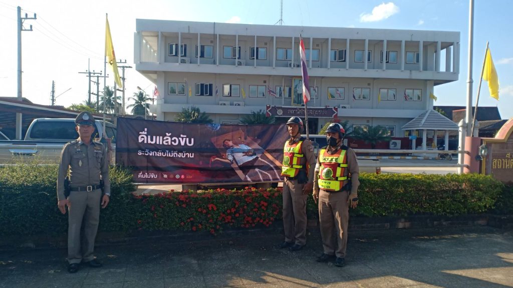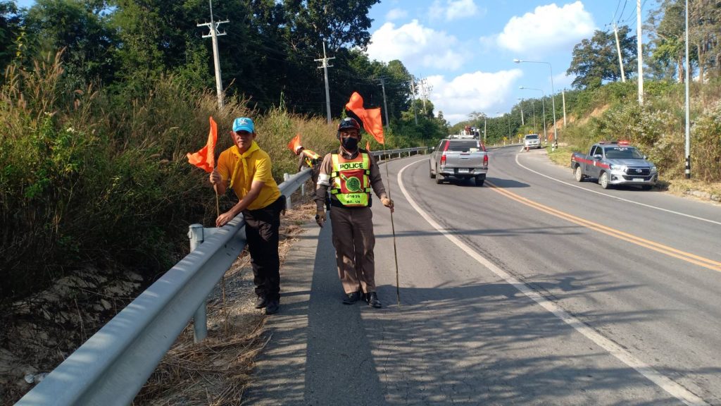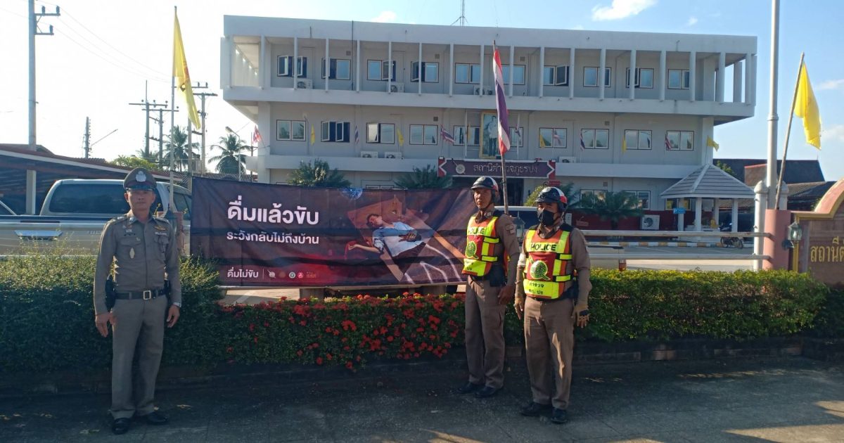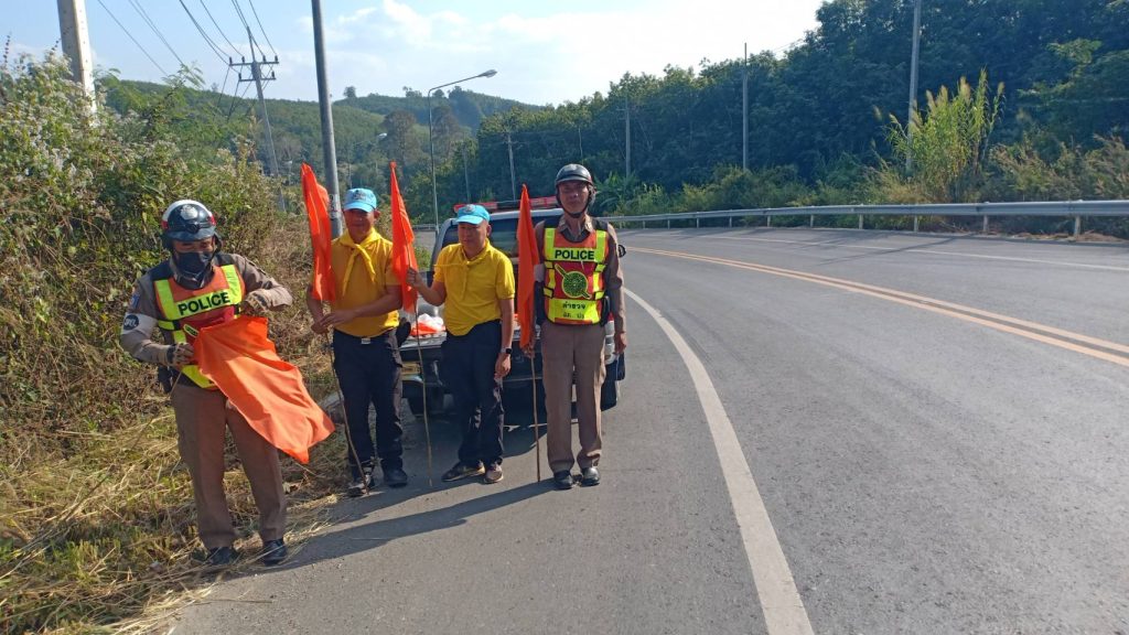 ติดตั้งป้ายรณรงค์ประชาสัมพันธ์ ธงสัญลักษณ์ เพื่อป้องกันและลดอุบัติช่วงเทศกาลปีใหม่ พ.ศ. 2568