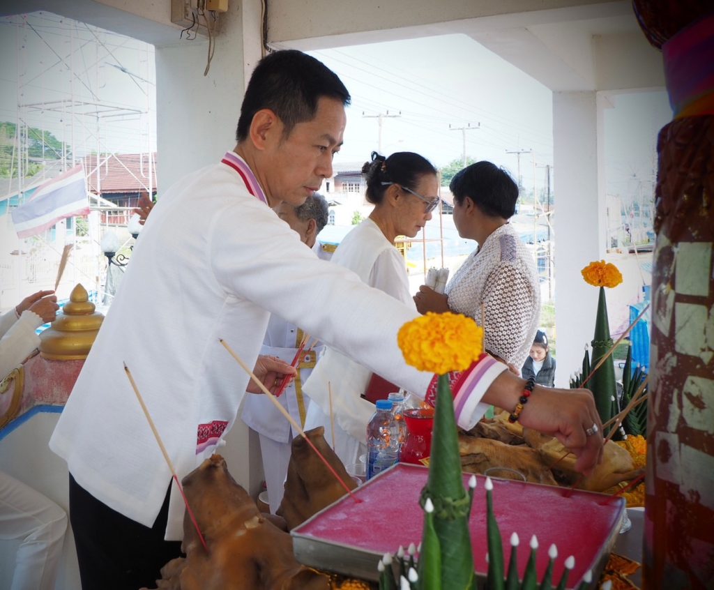 บวงสรวงเจ้าพ่อหนองเรือคำ สักการะศาลหลักเมือง 9 มกราคม 2568 โดย admin / ข่าวภารกิจผู้บังคับบัญชา วันที่ 9 มกราคม 2568 เวลา 09.09 น. พ.ต.อ.ประสิทธิ์ หล้าสมศรี ผกก.สภ.ปง พร้อมด้วย หัวหน้าส่วนราชการ หัวหน้าหน่วยงานรัฐวิสาหกิจ ผู้บริหารสถานศึกษา นายกองค์กรปกครองส่วนท้องถิ่น กำนัน ผู้ใหญ่บ้านและพี่น้องประชาชนชาวอำเภอปง ร่วมพิธีบวงสรวงเจ้าพ่อหนองเรือคำ สักการะศาลหลักเมือง และอนุสาวรีย์พระบาทสมเด็จพระจุลจอมเกล้าเจ้าอยู่หัว (รัชกาลที่ 5) ณ บริเวณหน้าศาลเจ้าพ่อหนองเรือคำ อำเภอปง จังหวัดพะเยา นายเกรียงไกร ฝีปากเพราะนายอำเภอปง เป็นประธานในพิธี FacebookFacebookXXLINELine
