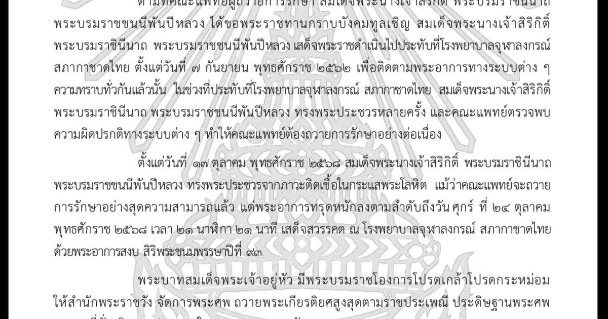 ประกาศสำนักพระราชวัง เรื่อง สมเด็จพระนางเจ้าสิริกิติ์ พระบรมราชินีนาถ พระบรมราชชนนีพันปีหลวง สวรรคต