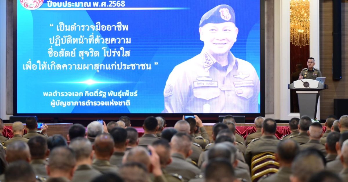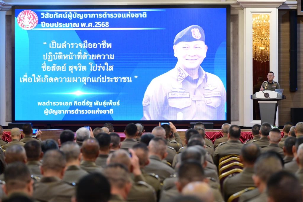 เมื่อวันที่ 4 พฤศจิกายน 2567 เวลา 14.00 น. พล.ต.อ.กิตติ์รัฐ พันธุ์เพ็ชร์ ผู้บัญชาการตำรวจแห่งชาติ เป็นประธานการประชุมมอบนโยบายการบริหารราชการสำนักงานตำรวจแห่งชาติ ประจำปีงบประมาณ 2568 ณ ห้องแจ้งยอดสุข อาคารศูนย์ฝึกอบรมพัฒนาบุคลากรและสวัสดิการ สำนักงานตำรวจแห่งชาติ โดยมีรองผู้บัญชาการตำรวจแห่งชาติ , ผู้ช่วยผู้บัญชาการตำรวจแห่งชาติ , ข้าราชการตำรวจระดับ พล.ต.ต. ขึ้นไป พร้อมทั้งสมาคมแม่บ้านตำรวจ จำนวนกว่า 465 นาย เข้าร่วมประชุม ณ ห้องแจ้งยอดสุข สำนักงานตำรวจแห่งชาติ และถ่ายทอดสัญญาณผ่านสื่ออิเล็กทรอนิกส์ไปยังหน่วยงานตำรวจทั่วไปประเทศ