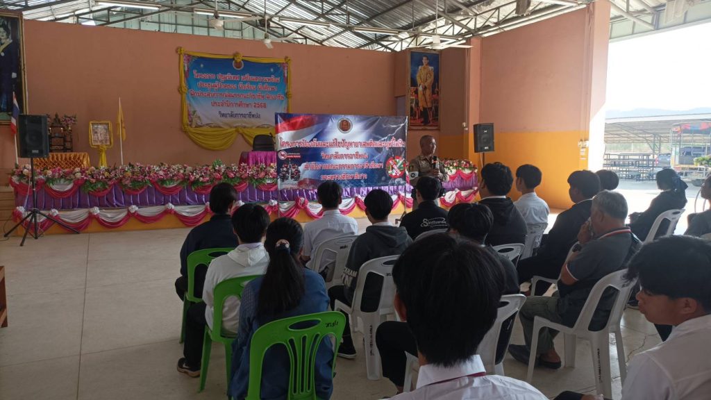 ผลการปฏิบัติงาน เดือน กุมภาพันธ์ 2568 ปป. 4 กุมภาพันธ์ 2568 โดย admin / งานป้องกันปราบปราม วันที่ 1 กุมภาพันธ์ 2568 โดยการอำนวยการของ พ.ต.อ.ประสิทธิ์ หล้าสมศรี ผกก.สภ.ปง มอบหมายให้ พ.ต.ท.ธวัชศิลป์ อำมาตย์ สวป. พร้อมด้วยร้อยเวร 20 , 201 ออกตรวจหน่วยเลือกตั้งสมาชิกสภาองค์การบริหารส่วนจังหวัดพะเยา ในพื้นที่รับผิดชอบ วันที่ 1 กุมภาพันธ์ 2568 โดยการอำนวยการของ พ.ต.อ.ประสิทธิ์ หล้าสมศรี ผกก.สภ.ปง , พ.ต.ท.ปิยะวะฒน์ ชีวชยาภรณ์ รองผกก.ป.ฯ , พ.ต.ท.ธวัชศิลป์ อำมาตย์ สวป.ฯ มอบหมายให้ ร.ต.อ.เจนณุพงศ์ มีสุข รอง สวป.ฯ/ร้อยเวร 20 พร้อมสายตรวจ 201 ได้ออกตรวจตราในเขตพื้นที่รับผิดชอบ เพื่อป้องกันปราบปรามอาชญากรรมและออกตรวจตราแหล่งสุ่มเสี่ยงต่อการกระทำผิดกฎหมาย ดังนี้ – บ้านบุคคลสำคัญ – ธกส. สาขาปง – ธนาคารออมสิน – ธนาคารกรุงไทย – ตลาดนาปรัง วันที่ 4 กุมภาพันธ์ 2568 ภายใต้การอำนวยการของ พ.ต.อ.ประสิทธิ์ หล้าสมศรี ผกก.สภ.ปง จว.พะเยา, พ.ต.ท.ปิยะวัฒน์ ชีวชยาภรณ์ รอง ผกก.ป.สภ.ปงฯ , พ.ต.ท.ธวัชศิลป์ อำมาตย์ สวป. สภ.ปงฯเจ้าหน้าที่ชุดจับกุม ประกอบด้วย เจ้าหน้าที่ตำรวจ สภ.ปง นำโดย ร.ต.อ.เจนณุพงศ์ มีสุข รอง สวปฯ ร.ต.ท.เรียน หมื่นแก้ว รอง สว.(ป.) ด.ต.ณรงค์ รามปาน ผบ.หมู่.(ป.)ส.ต.ต.ขจรศักดิ์ นันตา ผบ.หมู่(ผช.พงส) ได้ร่วมกันทำการจับกุมตัว ผู้ต้องหา จำนวน 1 ราย ในข้อหา มียาเสพติดให้โทษประเภท1 (เมทแอมเฟตามีนหรือยาบ้า) ไว้ในครอบครองโดยไม่ได้รับอนุญาต , เสพยาเสพติดให้โทษประเภท1เมทแอมเฟตามีนหรือยาบ้าโดยผิดกฎหมาย ของกลางยาบ้า จำนวน 200 เม็ด วันที่ 7 กุมภาพันธ์ 2568 เวลา 7:00 น.โดยการอำนวยการของ พ.ต.อ.ประสิทธิ์ หล้าสมศรี ผกก.สภ.ปง มอบหมายให้ ร.ต.อ.สันติ ใจเย็น หน.ชุด ชมส.ฯ พร้อมเจ้าหน้าที่ชุดชมสฯเข้าพบปะประชาชน บ้านห้วยแม่แดง หมู่ที่ 6 ต.นาปรัง อ.ปง จว.พะเยา ได้เข้าไปสอบถามปัญหาความเดือดร้อน ความต้องการของประชาชนในพื้นที่เขตรับผิดชอบ และประชาสัมพันธ์ด้านการป้องกันอาชญากรรม ,การป้องกันแก้ไขปัญหายาเสพติด,กฎหมายจราจร และการป้องกันอาชญากรรมออนไลน์ วันที่ 7 กุมภาพันธ์ 2568 เวลา 09.00 น. โดยการอำนวยการของ พ.ต.อ.ประสิทธิ์ หล้าสมศรี ผกก.สภ.ปง มอบหมายให้ ร.ต.ต.ฉลาด คงมั่น รอง สว.(ป.) สภ.ปง เป็นวิทยากรให้ความรู้เกี่ยวกับยาเสพติด การป้องกันแก้ไขปัญหายาเสพติด ประชาสัมพันธ์งานในหน้าที่ของตำรวจ แก่ลูกเสือสามัญรุ่นใหญ่โรงเรียนปงรัชดาภิเษก ณ ค่ายลูกเสือชั่วคราวโรงเรียนปงรัชดาภิเษก ต.นาปรัง อ.ปง จ.พะเยา วันที่ 8 กุมภาพันธ์ 2568 เวลา 09.30 น. โดยการอำนวยการของ พ.ต.อ.ประสิทธิ์ หล้าสมศรี ผกก.สภ.ปง มอบให้ให้ ร้อยเวร 20 , 201 ร่วมเจ้าหน้าที่ตู้ยามสบขามนำตัวผู้ป่วยจิตเวชซึ่งมีอาการ
