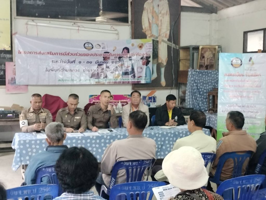 ผลการปฏิบัติงาน เดือน มีนาคม 2568 ปป. 1 มีนาคม 2568 โดย admin / งานป้องกันปราบปราม วันที่ 3 มีนาคม 2568 ภายใต้การอำนวยการของพ.ต.อ.พากษกรณ์ เจนใจ ผกก.สภ.ปงฯ พ.ต.ท.ปิยะวัฒน์ ชีวชยาภรณ์ รอง ผกก.ป.สภ.ปงฯ พ.ต.ท.ธวัชศิลป์ อำมาตย์ สวป. สภ.ปงฯมอบหมายให้เจ้าหน้าที่ตำรวจ สภ.ปง ร่วมกับปลัดอำเภอปงและเจ้าหน้าที่ฝ่ายปกครองอำเภอปง ร่วมจับกุมตัวผู้ต้องหาที่ 1 ราย ในข้อหา มียาเสพติดให้โทษประเภท 1 (เมทแอมเฟตามีนหรือยาบ้า) ไว้ในครอบครองโดยไม่ได้รับอนุญาต ของกลาง ยาบ้า จำนวน 192 เม็ด วันที่ 4 มี.ค. 2568 เวลา 09.00 น. โดยการอำนวยการของ พ.ต.อ.พากษกรณ์ เจนใจ ผกก.สภ.ปง มอบหมายให้ ร.ต.อ.ถนอม ก่อกำลัง ร้อยเวร 20 พร้อมพวก บรรยายและซักซ้อมแผนเผชิญเหตุ “คนร้ายกราดยิงในสถานศึกษา” ณ โรงเรียนราชานุเคราะห์ ต.ผาช้างน้อย อ.ปง จ.พะเยา วันที่ 5 มี.ค. 2568 เวลา 07.00 น. พ.ต.ท.ปิยะวัฒน์ ชีวชยาภรณ์ รอง ผกก.ป.ฯ พร้อมชุด ชป.ตำบลยั่งยืน , เจ้าหน้าที่ฝ่ายปกครอง , เจ้าหน้าที่สาธารณสุข และผู้นำชุมชน เข้ารับการอบรม โครงการอบรมวิทยากรต้นแบบตำบลยั่งยืน เพื่อแก้ไขปัญหายาเสพติดแบบครบวงจร ตามยุทธศาสตร์ชาติ (ครู ข.) ณ หอประชุม ภ.จว.พะเยา วันที่ 6 มีนาคม 2568 เวลา 07.00 น. โดยการอำนวยการของ พ.ต.อ.พากษกรณ์ เจนใจ ผกก.สภ.ปง มอบหมายให้เจ้าหน้าที่ชุด ชมส.สภ. ปง พบปะผู้นำชุมชน เพื่อเตรียมความพร้อมดำเนินโครงการ ชุมชนยั่งยืน ประจำปี ณ หอประชุม บ้านใหม่ดอนมูล ม.2 ต.ควร อ.ปง จ.พะเยา วันที่ 6 มีนาคม 2568 โดยการอำนวยการของ พ.ต.อ.พากษกรณ์ เจนใจ ผกก.สภ.ปง, พ.ต.ท.ปิยะวะฒน์ ชีวชยาภรณ์ รองผกก.ป.ฯ พ.ต.ท.ธวัชศิลป์ อำมาตย์ สวป.ฯ มอบหมายให้ ร.ต.อ.เจนณุพงศ์ มีสุข รอง สวป.ฯ/ร้อยเวร 20 พร้อมสายตรวจ 201 ได้ออกตรวจตราในเขตพื้นที่รับผิดชอบ เพื่อป้องกันปราบปรามอาชญากรรมและออกตรวจตราแหล่งสุ่มเสี่ยงต่อการกระทำผิดกฎหมาย ดังนี้-บ้านบุคคลสำคัญ-ธกส. สาขาปง-ธนาคารออมสิน-ธนาคารกรุงไทย-ตลาดนาปรัง วันที่ 7 มี.ค. 2568 เวลา ประมาณ 09:00 น. โดยการอำนวยการของ พ.ต.อ.พากษกรณ์ เจนใจ ผกก.สภ.ปง มอบหมายให้ ร.ต.อ.ถนอม ก่อกำลัง ร้อยเวร 20 , พร้อมพวก ซ้อมแผนเผชิญเหตุ คนร้ายกราดยิงในโรงเรียน ณ โรงเรียนใหม่ปางค่า (ภูลังกาอนุสรณ์) ต.ผาช้างน้อย อ.ปง จ.พะเยา วันที่ 9 มีนาคม 2568 โดยการอำนวยการของ พ.ต.อ.พากษกรณ์ เจนใจ ผกก.สภ.ปง , พ.ต.ท.ปิยะวัฒน์ ชีวชยาภรณ์ รอง ผกก.ป.สภ.ปง , พ.ต.ท.ธวัชศิลป์ อำมาตย์ สวป.สภ.ปง มอบหมายให้ ร.ต.อ.เจนณุุพงศ์ รอง สวป.ฯ พร้อมกำลัง รวม 5 นาย ตั้งจุดตรวจตามแผนอินทนนท์ 4/2558 (ด่าน 3 ชั่วโมง) หน้าตู้ยามห้วยสิงห์ โดยมีรายละเอียดผลการปฏิบัติดังนี้1.ตรวจค้นรถยนต์ส่วนบุคคล 18คัน2.ตรวจค้นรถ จยย. 10 คัน3.ตรวจค้นรถยนต์โดยสาร 8 คัน4.ตรวจค้นรถยนต์บรรทุ