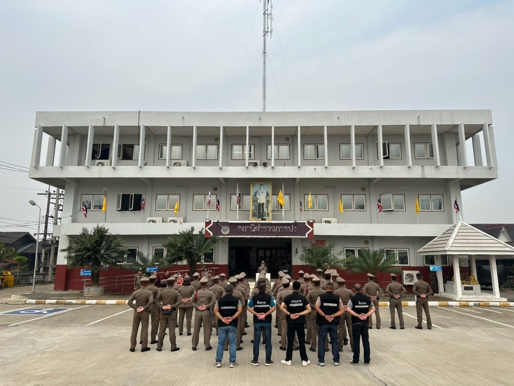 ผลการปฏิบัติบัติงาน เดือน มีนาคม 2568 อก. 1 มีนาคม 2568 โดย admin / งานอำนวยการ วันที่ 7 มีนาคม 2568 เวลา 09.00 น. ข้าราชการตำรวจ สภ.ปง ตั้งแถวต้อนรับและรับมอบมอบนโยบายจาก พ.ต.อ.พากษกรณ์ เจนใจ ผู้กำกับการสถานีตำรวจภูธรปง ที่เดินทางมารับตำแหน่งใหม่ ณ ลานหน้าสถานีตำรวจภูธรปง วันที่ 11 มี.ค. 2568 เวลา 20.00 น. พ.ต.อ.พากษกรณ์ เจนใจ ผกก.สภ.ปง มอบหมายให้ พ.ต.ท.ปิยะวัฒน์ ชีวชยาภรณ์ รอง ผกก.สภ.ปง พร้อมด้วยคณะกรรมการ กต.ตร.ฯ และข้าราชการตำรวจในสังกัด ร่วมเป็นเจ้าภาพสวดพระอภิธรรมศพ คุณแม่อุไร หมื่นแก้ว มารดา ร.ต.ท.เรียน หมื่นแก้ว รอง สว.(ป.)สภ.ปง ณ บ้านเลขที่ 83 ม.8 บ้านป่าคาใหม่ ต.ควร อ.ปง จ.พะเยา วันที่ 12 มี.ค. 2568 เวลา 13.00 น. พ.ต.อ.พากษกรณ์ เจนใจ ผกก.สภ.ปง พร้อมด้วยข้าราชการตำรวจในสังกัด ร่วมพิธีฌาปนกิจธรรมศพ คุณแม่อุไร หมื่นแก้ว มารดา ร.ต.ท.เรียน หมื่นแก้ว รอง สว.(ป.)สภ.ปง ณ ฌาปนสถานบ้านป่าคาใหม่ ต.ควร อ.ปง จ.พะเยา FacebookFacebookXXLINELine