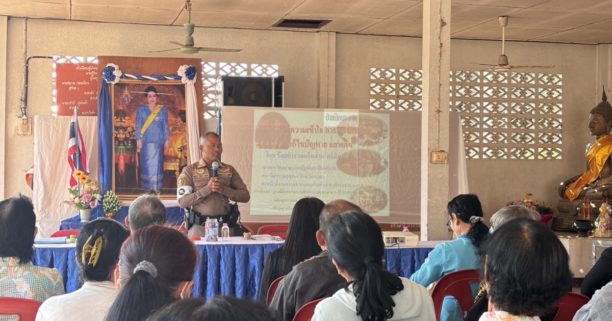 วิทยากรให้ความรู้เกี่ยวกับยาเสพติด 11 กุมภาพันธ์ 2568 โดย admin / ข่าวกิจกรรม 01 วันที่ 11 กุมภาพันธ์ 2568 เวลา 09.00 น. โดยการอำนวยการของ พ.ต.อ.ประสิทธิ์ หล้าสมศรี ผกก.สภ.ปง มอบหมายให้ ร.ต.ต.ฉลาด คงมั่น รอง สว.(ป.)สภ.ปง เป็นวิทยากรให้ความรู้เกี่ยวกับยาเสพติด การป้องกันแก้ไขปัญหายาเสพติด ประชาสัมพันธ์งานในหน้าที่ของตำรวจ แก่ผู้นำ คณะกรรมการหมู่บ้าน/สมาชิกในหมู่บ้าน ณ หอประชุมบ้านฝายแก้ว หมู่ที่ 7 ต.ออย อ.ปง จ.พะเยา FacebookFacebookXXLINELine