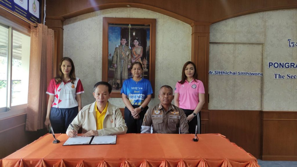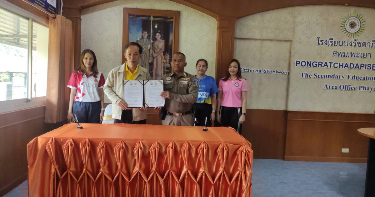 โดยการอำนวยการของ พ.ต.อ.ประสิทธิ์ หล้าสมศรี ผกก.สภ.ปง มอบหมายให้เจ้าหน้าที่จราจร สภ.ปง ทำบันทึกความร่วมมือ (MOU) ข้อตกลงร่วมกันระหว่าง สถานีตำรวจภูธรปง ร่วมกับ โรงเรียนปงรัชดาภิเษก เพื่อรณรงค์สวมหมวกนิรภัยสำหรับบุคลากร และนักเรียนผู้ขับขี่ , ผู้ซ้อนท้ายรถจักรยานยนต์ โดยมีวัตถุประสงค์เพื่อยกระดับความปลอดภัยในชีวิต และลดระดับความสูญเสียจากอุบัติเหตุจราจร