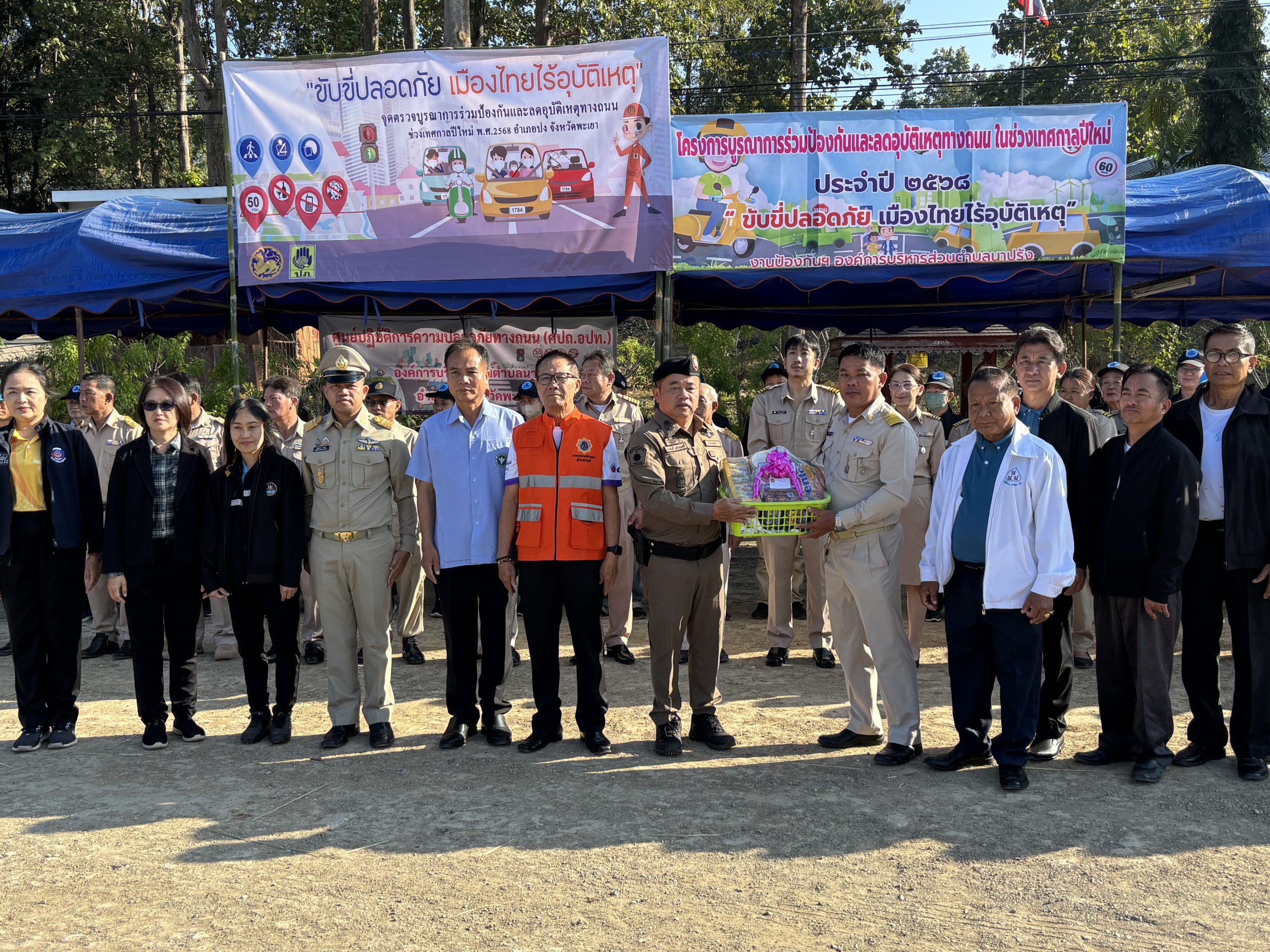 ติดตั้งป้ายรณรงค์ประชาสัมพันธ์ ธงสัญลักษณ์ เพื่อป้องกันและลดอุบัติช่วงเทศกาลปีใหม่ พ.ศ. 2568
