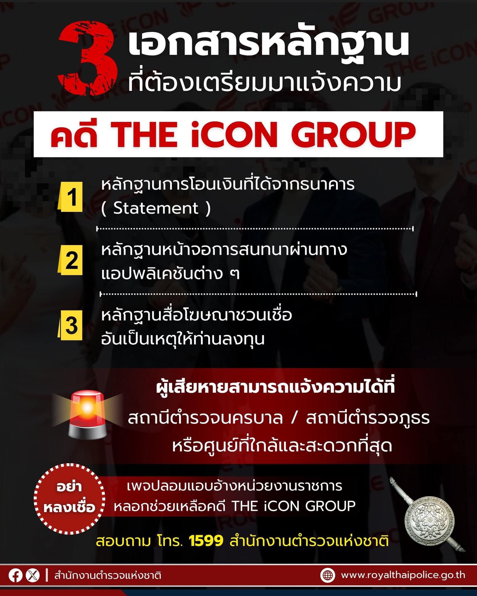 ช่องทางรับแจ้งความคดี The Icon Group คดี “ดิไอคอนกรุ๊ป” แจ้งความได้ที่ สน. / สภ. ทุกแห่ง